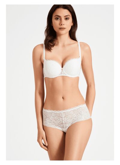 Quel avantage esthétique apporte ce soutien-gorge ? Il met en valeur le décolleté en offrant un effet généreux et naturel, grâce à sa coque lisse qui sublime la poitrine sans ajouter de volume excessif.