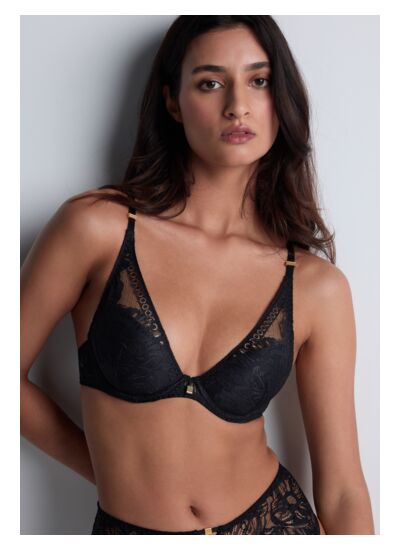 Consultez le guide de taille AubadeModèle plongeant, forme foulard, permettant des décolletés profonds et sexy. Bonnets avec coques progressives - effet push. Bénéfice : il rapproche les seins, la dentelle montant sur le haut bonnet souligne le galbe de la poitrine pour un décolleté renversant. Jusqu’au bonnet E