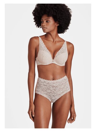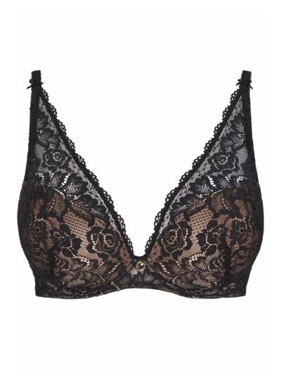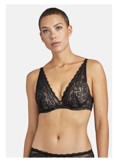 Quelle est la spécificité de la forme foulard sur ce soutien-gorge ? La forme foulard permet un décolleté très plongeant tout en assurant un bon maintien. La dentelle qui monte sur le haut du bonnet met en valeur le galbe de la poitrine pour un rendu élégant et sensuel.