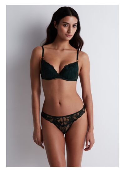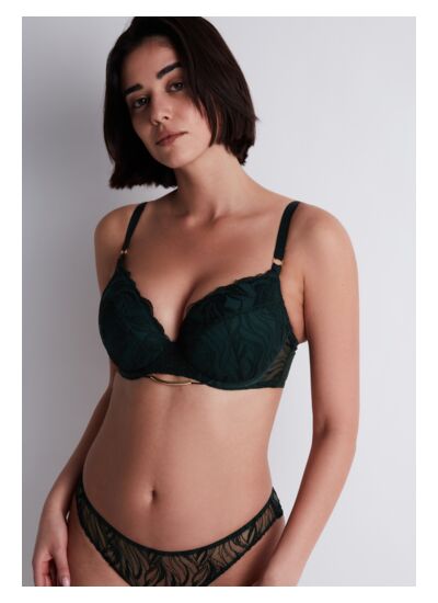 Comment le soutien-gorge Push-up Into The Groove améliore-t-il le décolleté ? Ce modèle plongeant utilise une mousse en trois parties et des coussinets amovibles qui recentrent et projettent la poitrine vers le centre, créant un décolleté plus profond, plus volumineux et visuellement harmonieux.