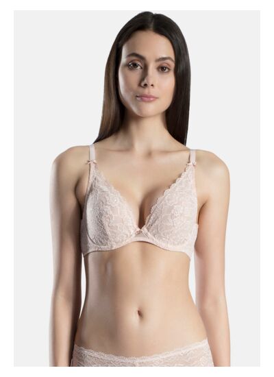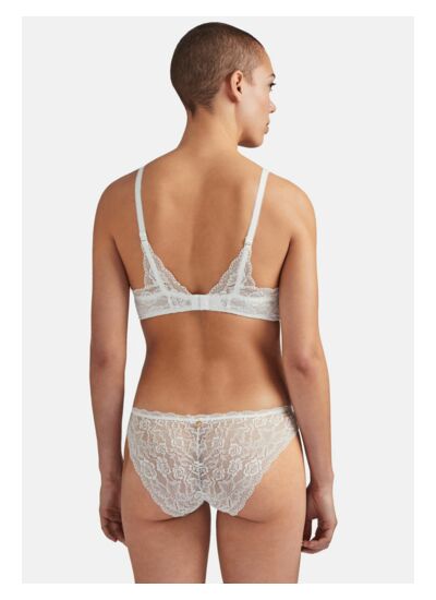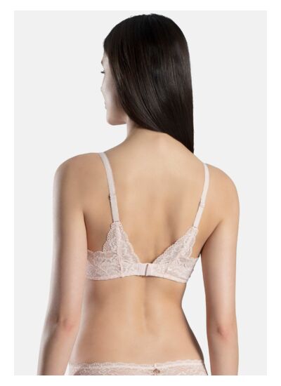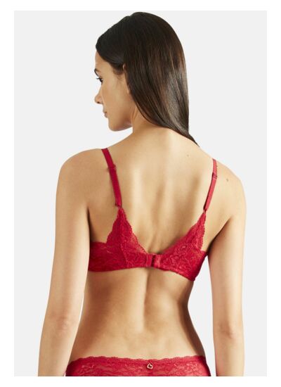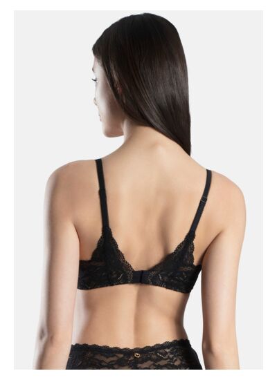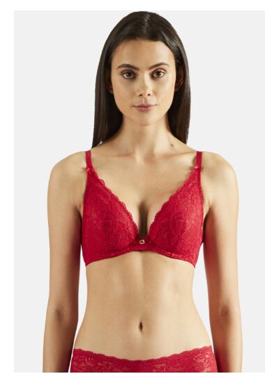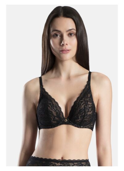 Comment ce soutien-gorge met-il en valeur le décolleté ? Sa forme triangle associée aux armatures crée un décolleté plongeant très séduisant. La matière se déploie délicatement sur la peau, habillant le décolleté avec élégance tout en assurant un maintien rassurant.