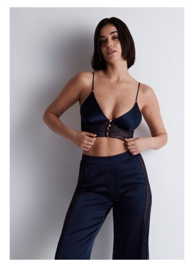 Le soutien-gorge Triangle Midnight Whisper convient-il aux poitrines sensibles ? Oui, sa forme triangle sans armature et sa légèreté offrent un confort optimal, idéal pour les femmes recherchant un maintien doux sans compression.