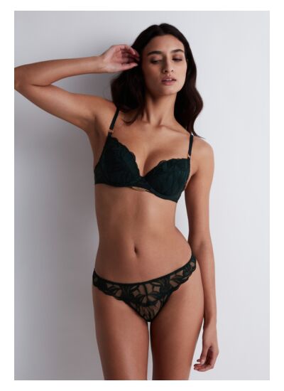 Quelle différence entre le tanga Into The Groove et un string classique ? Le tanga est plus couvrant à l’avant, à l’arrière et sur les côtés, ce qui garantit un maintien plus sûr tout en conservant une silhouette sexy et féminine.