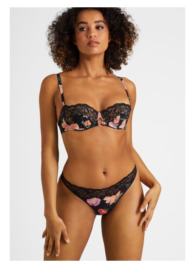 Sweet Folk vous emmène dans son univers bohême chic, où une bande de dentelle Leavers incrustée sublime un imprimé floral élégant et tendance.Un tulle plumetis met en valeur la dentelle incrustée en y apportant une touche de séduction. Un anneau doré sublime certaines formes avec sa touche de lumière. Aubade vous propose une belle offre en pièces de nuit avec le même imprimé sur un support avec un bel effet de brillance.