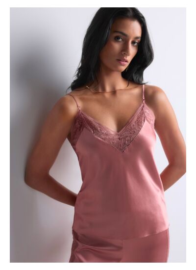 Ce top est-il disponible en d’autres couleurs que le rose ? Actuellement, le top à fines bretelles Midnight Whisper est proposé en rose, une teinte qui souligne la délicatesse et la féminité du modèle.