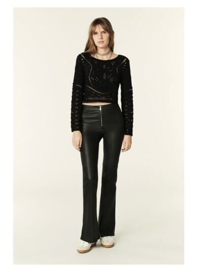 Le gilet MARC se démarque par son esprit romantique. Ce cardigan manches longues présente une maille ajourée façon dentelle créant un rendu graphique raffiné. Pourvu de manches longues et dune encolure arrondie, il se ferme par une rangée de boutons ton sur ton au dos pour un style glamour. Avec sa coupe cropée, il sassocie parfaitement avec un pantalon, un short ou une jupe en fonction de nos envies du moment.