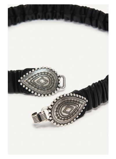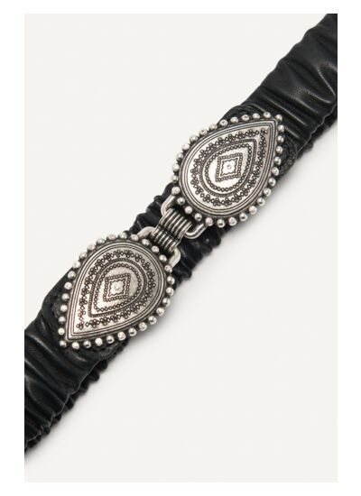 La ceinture SBORENTO ba&sh mise tout sur loriginalité, tout en affichant un air très féminin. Lopération séduction fonctionne, dabord grâce à sa boucle en forme de bijou. Sous lapparence de gouttes, les deux extrémités semboîtent par crochet. Elles sont travaillées, affichant chacune un losange en leur centre. Cette ceinture bénéficie dun tour élastique pour sadapter à la taille. Cela lui donne un air froncé unique. Elle accompagne parfaitement un pantalon large ou une robe chemise pour rompre sa ligne droite.