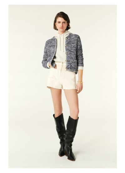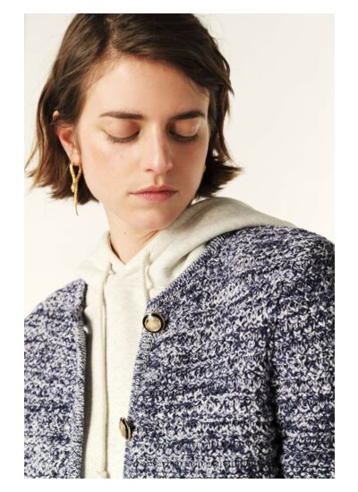Le gilet GUSPA est un modèle qui propose une coupe courte et des manches longues. Son col rond est sobre et élégant, il sera parfait en toutes circonstances, au bureau ou pour sortir. Il se ferme à lavant avec une rangée de boutons qui sont autant de détail élégants. Cette pièce est spécialement conçue pour vous garder au chaud et sublimer tous vos looks. A porter ouvert sur une robe, en superposition sur un chemisier, leffet sera toujours parfait !