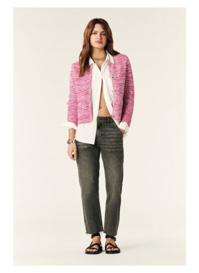 Le gilet GUSPA est un modèle qui propose une coupe courte et des manches longues. Son col rond est sobre et élégant, il sera parfait en toutes circonstances, au bureau ou pour sortir. Il se ferme à lavant avec une rangée de boutons qui sont autant de détail élégants. Cette pièce est spécialement conçue pour vous garder au chaud et sublimer tous vos looks. A porter ouvert sur une robe, en superposition sur un chemisier, leffet sera toujours parfait !
