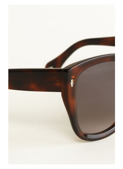 Passez en mode été avec LYVIE, des lunettes de soleil forme oeil de chat douces et féminines ! Les cercles sont en acétate travaillé de façon à affiner la matière et les verres affichent un coloris brun dégradé. Les branches épaisses affichent le losange en métal emblématique de la Maison sur les tenons et les embouts. Le logo ba&sh habille la branche gauche. Le métal de larmature se devine à travers les branches pour un peu plus déclat. Des solaires ba&sh très tendance, idéales à la ville comme à la plage.