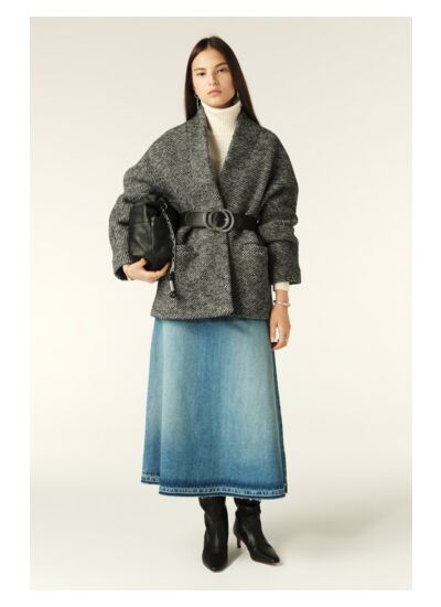 Ce modèle contient de la laine recyclée.|manteau court tweed