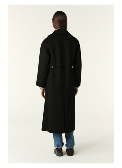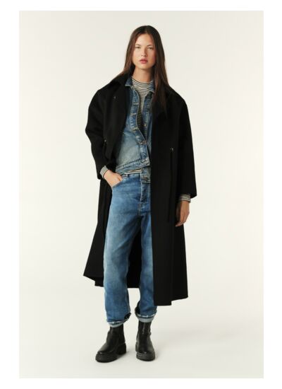 Le manteau KATE ba&sh est une pièce forte de la saison. Ce manteau long affiche une allure minimaliste avec un col chemise, des épaules légèrement tombantes, des poches passepoilées et une longueur sous le genou. Il est confectionné en lainage double face. Le détail mode ? La ceinture cordon dans le même tissu, qui se glisse dans des oeillets dorés à la taille. Un manteau chic et épuré, rehaussé dun joli détail féminin.