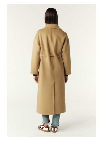 Le manteau KATE ba&sh est une pièce forte de la saison. Ce manteau long affiche une allure minimaliste avec un col chemise, des épaules légèrement tombantes, des poches passepoilées et une longueur sous le genou. Il est confectionné en lainage double face. Le détail mode ? La ceinture cordon dans le même tissu, qui se glisse dans des oeillets dorés à la taille. Un manteau chic et épuré, rehaussé dun joli détail féminin.