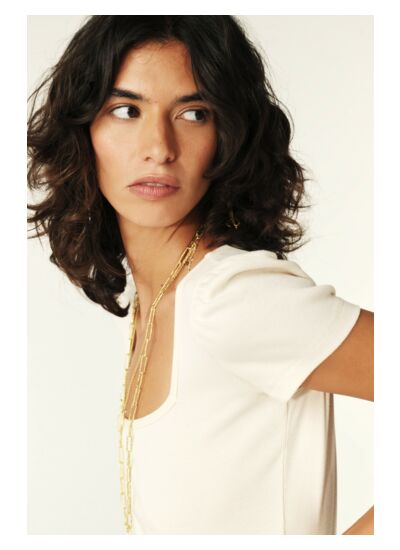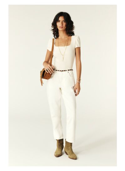 Le top ODELIA ba&sh se veut un essentiel du vestiaire estival. Ce haut associe une belle encolure carrée, qui dévoile largement la peau, et des petites manches courtes froncées aux épaules. Il est confectionné dans un coton stretch agréable au porté. A noter : la coupe assez près du corps qui met la silhouette en valeur. Un top facile à vivre, parfait pour des looks casual-chic en ville.