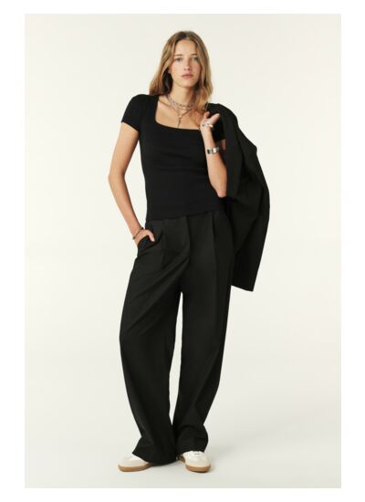 Le top ODELIA ba&sh se veut un essentiel du vestiaire estival. Ce haut associe une belle encolure carrée, qui dévoile largement la peau, et des petites manches courtes froncées aux épaules. Il est confectionné dans un coton stretch agréable au porté. A noter : la coupe assez près du corps qui met la silhouette en valeur. Un top facile à vivre, parfait pour des looks casual-chic en ville.