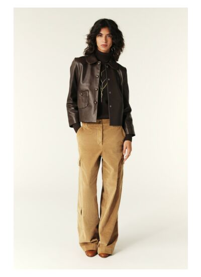 La veste MILOS est un modèle adorable, élégant et original comme on les aime. Coupe courte, elle propose des manches mi longues et se ferme avec une rangée de boutons pression recouverts de cuir. Son col claudine est notre coup de coeur, à la fois rétro et glamour, leffet est inoubliable associé aux découpes et aux fronces sur la pièce. A marier avec une jupe coupe droite et des talons pour un look rétro digne de Jackie Kennedy !