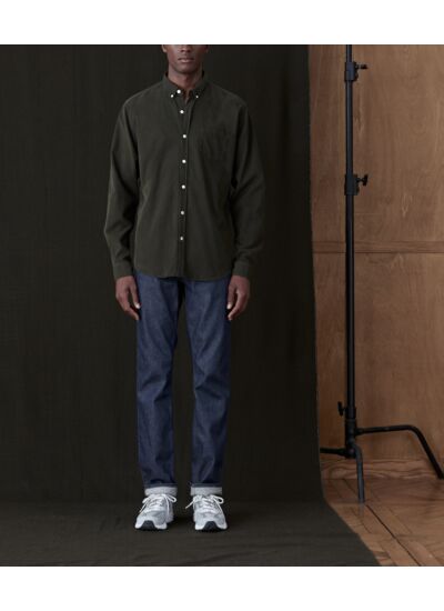 Véritable basique du look Ivy League puis du vestiaire contemporain, la chemise blanche puise son origine sur les bancs des prestigieuses universités américaines des années 50. Coupe semi-ajustée, col français boutonné et poche plaquée sont les trois détails rétro de notre chemise Tribeca. Coton sourcé au Portugal. FABRICATION VERTUEUSE : GARMENT DYE : Ce processus de teinture vertueux s’effectue sur des vêtements finis, et non sur les tissus d’origine. En plus d’obtenir une teinture de meilleure qualité et, plus durable, la technique du garment dye évite le gâchis de tissu et implique une production raisonnée et responsable. COMMENT L'ASSOCIER ? L'association du vert et du bleu marine, inattendu mais chic : c'est ce qu'on vous conseille d'essayer pour un look quotidien mais travaillé. Daniel mesure 1m87 et porte une taille L.