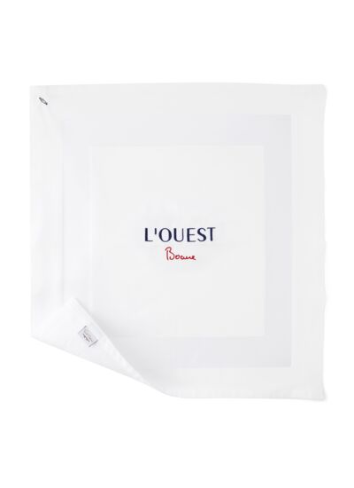 Habitués de la Brasserie L’Ouest ? C’est comme si vous y étiez avec cette serviette de table en tissu brodée au nom de cette incontournable brasserie lyonnaise.