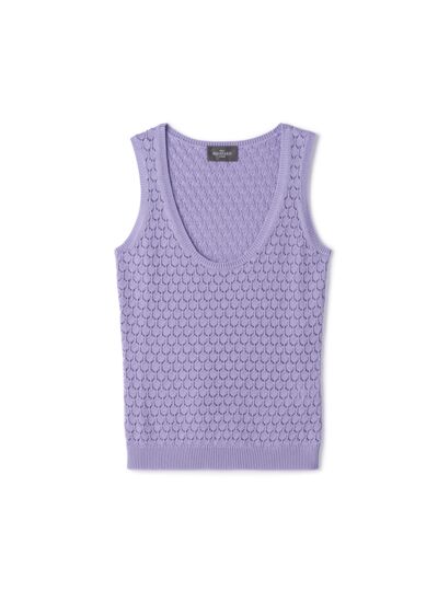 Débardeur près du corps à col rond. Maille ajourée en soie et coton, assortie au cardigan référence MO3720.