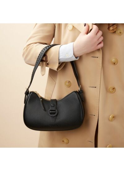 Le sac à bandoulière "Astrid" de Cacharel incarne la simplicité et la praticité, ce qui en fait un compagnon idéal pour un usage quotidien. Issu de la ligne fonctionnelle, élégante et minimale Astrid, ce sac compact est facile à porter et allie sans effort forme et fonctionnalité. Fabriqué en cuir végétal grainé avec une finition mate pour une touche de luxe, il présente des détails méticuleux tels que la boucle ton sur ton sur la sangle de fermeture et les détails tressés sur la sangle d'épaule. La signature minimale est subtilement embossée sur la texture, pour une esthétique épurée. Proposé dans une palette de couleurs neutres et polyvalentes (noir, taupe et vert foncé), le sac à bandoulière Astrid est l'incarnation de l'élégance discrète.