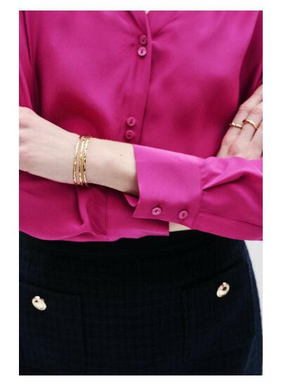 La chemise Calysta, un éclat de douceur en 100% soie. Sa coupe droite flatte toutes les morphologies tout en dissimulant subtilement la taille. Confectionnée avec soin, elle offre une allure élégante adaptée à diverses occasions. - Chemise coupe droite - Col chemise - Manches longues - Longueur 66 cm pour une taille 38 - Tailles du 34 au 46 Idées look - La chemise Calysta s'accorde avec un pantalon droit en laine et des escarpins pour une tenue élégante. - Ce modèle de chemise peut être combiné avec une jupe midi plissée et des sandales à talons pour un look chic décontracté. Conseil entretien Pour préserver la qualité de votre chemise en soie Caroll, le nettoyage à sec par un professionnel en pressing est très fortement recommandé. Toutefois, vous pouvez également laver ce vêtement à la main à l'eau froide. Le repassage est possible : il est recommandé de le repasser à basse température (maximum 110°) et sans vapeur pour éviter tout dommage. Il est interdit d'utiliser le sèche-linge ou de laver cette pièce en machine.
