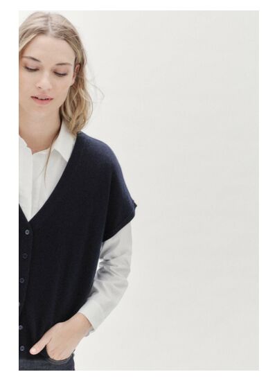 Cardigan oversize à manches courtes, en laine, cachemire et viscose mélangés. A même la peau, le cardigan oversize Lexie apportera à votre silhouette une allure très mode. Idéal à la mi-saison ce tricot tout doux se porte blousé dans un jean Flare taille haute ou droit, fermé sur une chemise en popeline et un pantalon cigarette, pour une dégaine boyish tendance. - Cardigan oversize à la forme T et encolure V - Fermeture par 6 boutons ton sur ton - Finitions bord-côtes - Longueur, 54 cm pour une taille S