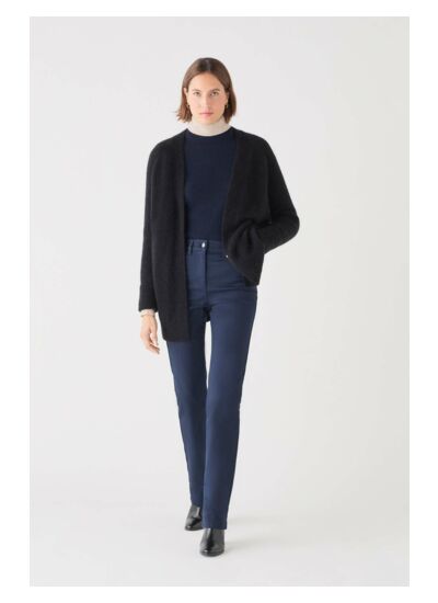 Le gilet Mgary3, un indispensable pour affronter le froid avec élégance. Tricoté en mélange de laine et de mohair, il vous assure chaleur et douceur. Son design droit suit les lignes du corps tout en confort. Son effet texturé enrichit chaque tenue d'une touche chic décontractée. - Gilet droit - Col V - Manches longues - Longueur 69 cm pour une taille S Idées look - Le gilet Mgary se marie bien avec un pull col roulé clair et un pantalon droit bleu, complété par des bottines à talon pour une allure casual chic. - Ce gilet droit peut être assorti à une chemise fluide et un jean slim noir, idéal avec des mocassins pour un look quotidien élégant. Conseil entretien Lavez ce gilet à la main uniquement, le lavage en machine est interdit pour préserver la qualité de la maille. Le repassage est fortement recommandé : effectuez-le à basse température (maximum 110°) et sans vapeur, car cela peut causer des dommages irréversibles. Le sèche-linge est également interdit pour maintenir l'intégrité du tissu.