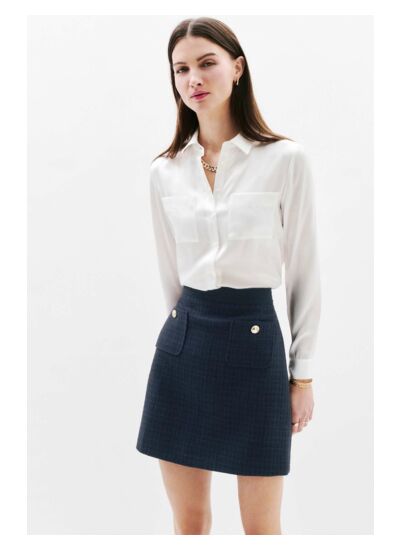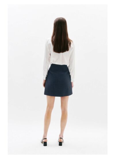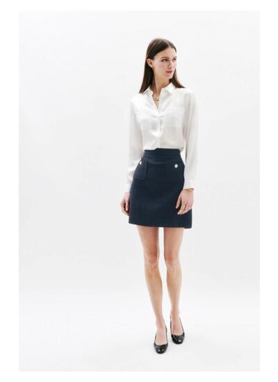 La jupe Janya1, un essentiel effet tweed pour une allure workwear. Sa coupe droite et courte allonge les jambes. Ce modèle est orné de boutons dorés pour un style intemporel. - Jupe courte - Coupe droite - Longueur 49,5 cm pour une taille 38 - Tailles du 34 au 44 - Doublée - À associer à la veste Vonetta Idées look - La jupe Janya1 peut s'associer avec un chemisier fluide et des escarpins pour une tenue de bureau élégante. - Cette jupe droite se marie parfaitement avec un pull ajusté et des bottines à talons, une tenue idéale pour une sortie en ville. Conseil entretien Pour préserver la qualité de votre jupe Caroll et prolonger sa durée de vie, le nettoyage à sec par un professionnel en pressing est très fortement recommandé. Toutefois, vous pouvez également opter pour un lavage délicat à 30°C. Le repassage est possible : il est recommandé à basse température (maximum 110°), mais l'utilisation de vapeur est interdite car elle peut causer des dommages irréversibles. Enfin, l'usage du sèche-linge est interdit afin de protéger les fibres du tissu.