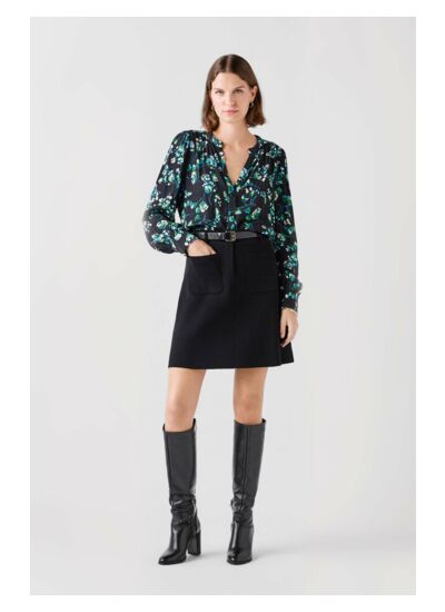 La jupe Jeloise, fluide et courte, est une pièce coup de coeur. Elle offre un style chic décontracté parfait pour le quotidien. Idéale pour les looks Working girl, elle s'associe aisément à divers hauts. Sa forme convient à la plupart des morphologies en valorisant subtilement la taille. - Jupe courte - Forme fluide -Longueur 50 cm pour une taille S Idées look - La jupe Jeloise se marie bien avec une blouse à motif et des bottes hautes pour un look chic décontracté. - Cette jupe fluide s'accorde avec un pull doux et des escarpins pour une tenue élégante au bureau. Conseil entretien Lavez cette jupe à la main uniquement, le lavage en machine est interdit pour préserver la qualité de la maille. Le repassage est possible : il doit s'effectuer à basse température (maximum 110°) et l'utilisation de vapeur est interdite car elle peut causer des dommages irréversibles. Il est également interdit d'utiliser un sèche-linge pour ce vêtement.