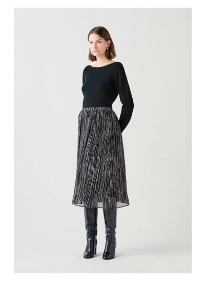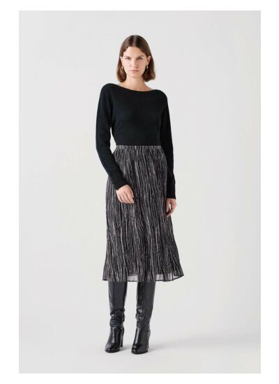 La jupe Jgasty, confectionnée en soie douce et hypoallergénique, est la pièce coup de coeur pour les beaux jours. Sa forme fluide et sa longueur 3/4 dessinent une silhouette élégante et légère. Elel est parfaite pour un look workwear ou chic décontracté grâce à son style polyvalent. - Jupe longueur 3/4 - Forme fluide - Longueur 77,5 cm pour une taille 38 - Avec doublure Idées look - La jupe Jgasty se marie bien avec un pull noir ajusté et des bottes hautes en cuir pour une allure chic décontractée. - Il est possible de combiner cette jupe fluide avec un chemisier léger et des sandales à talons pour une tenue élégante par temps clément. Conseil entretien Le nettoyage à sec par un professionnel en pressing est très fortement recommandé pour prolonger la durée de vie de votre jupe en soie. Toutefois, vous pouvez également opter pour un lavage délicat à 30°C. Le repassage est possible il est recommandé de le faire à basse température (maximum 110°) et sans vapeur. Il est interdit d'utiliser le sèche-linge pour ce vêtement.