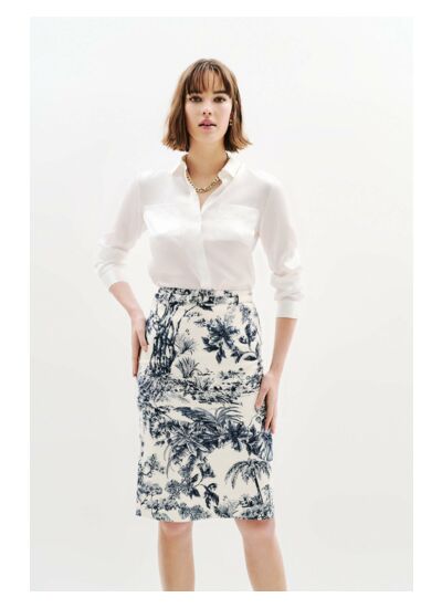 Caroll LLAB revient pour une nouvelle édition. Toujours à cœur de vous faire découvrir des nouvelles tendances. Cette capsule revisite le motif Toile de Jouy en édition limité. Classique, fort et intemporel, il est l’un des symboles du chic à la française. Laissez-vous séduire par la coupe crayon ultra féminine de la jupe johan. Elle deviendra bientôt une pièce incontournable de votre vestiaire. Modèle en mélange de coton, à la fois léger et confortable. - Taille marquée par une fine ceinture à boucle, ton sur ton - Longueur 70 cm pour une taille 38