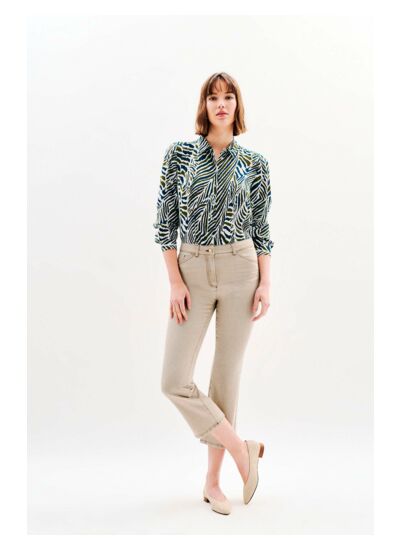 Le pantalon Patsy3, un essentiel moderne. Sa coupe droite convient à toutes les morphologies et allonge la silhouette. Son effet denim modernise vos tenues de tous les jours. Ce modèle s'adapte avec élégance à diverses occasions. - Pantalon - Coupe droite - Modèle 5 poches - Longueur totale 96 cm pour une taille 38 - Tailles du 34 au 44 Idées look - Le pantalon Patsy3 se marie bien avec une chemise à motif et des escarpins pour un look chic et structuré. - Ce pantalon peut être porté avec un pull doux en cachemire et des bottines pour une allure décontractée mais élégante. Conseil entretien Pour maintenir la qualité de votre pantalon Caroll et prolonger sa durée de vie, le nettoyage à sec par un professionnel en pressing est très fortement recommandé. Toutefois, vous pouvez également opter pour un lavage à 30°C en cycle délicat et toujours laver sur l'envers afin de préserver la couleur d'origine. Le repassage est possible : il est recommandé à basse température (maximum 110°) cependant, l'utilisation de la vapeur est interdite car elle peut causer des dommages irréversibles. Il est interdit d'utiliser le sèche-linge.