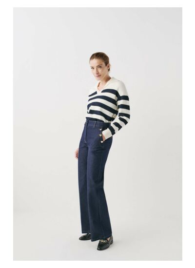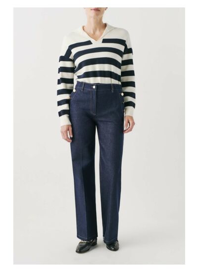 Le pantalon à pont pdelhobo est confectionné en mélange de coton. Sa couleur profonde et son style classique apportent une touche intemporelle à votre tenue. Sa coupe large et ses boutons décoratifs ajoutent une note distinctive pour une allure à la fois décontractée et sophistiquée. - Ceinture à même avec passants - Fermeture par un bouton et un zip sous patte - Modèle 5 poches - Longueur totale 110 cm pour une taille 38 Conseil entretien Pour éviter tout risque de dégorgement, lavez ce vêtement sur l'envers, avec des coloris similaires. Il peut laisser des traces sur des surfaces claires en cas de frottement.