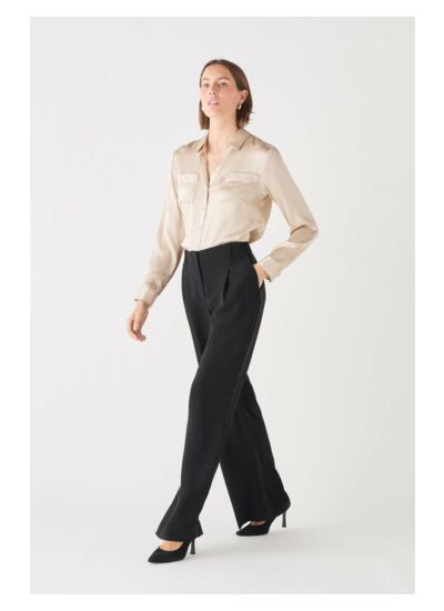 Un vent de nouveauté souffle sur votre dressing avec le pantalon Principe2. Sa coupe large et sa taille haute sculptent la silhouette, parfait pour une soirée. Son style minimaliste s'accorde aux tendances actuelles : confort et élégance en toute simplicité. - Pantalon - Coupe large - Taille haute - Longueur totale 106 cm pour une taille 38 - Tailles du 34 au 44 Idées look - Le pantalon Principe2 peut être assorti à une chemise soyeuse et des escarpins pour un look élégant. - Ce pantalon large taille haute se marie parfaitement avec un pull ajusté en cachemire et des bottines minimalistes. Conseil entretien Pour préserver la qualité de votre pantalon Caroll et prolonger sa durée de vie, le nettoyage à sec par un professionnel en pressing est très fortement recommandé. Toutefois, vous pouvez également opter pour un lavage à 30°C en cycle ultra délicat. Le repassage est possible : il est recommandé à basse température (maximum 110°), mais attention, l'utilisation de vapeur est interdite car elle peut causer des dommages irréversibles. Enfin, l'usage du sèche-linge est interdit afin de protéger les fibres du tissu.