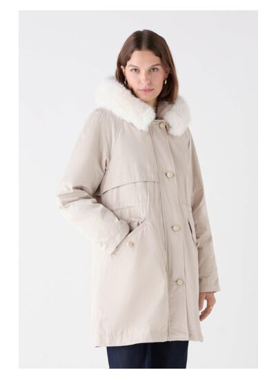 Incontournable de la saison hivernale, la parka gtoundra à la coupe longue se porte quotidiennement. Elle vous offre un véritable confort grâce à ses poches fourrées et sa doublure intérieure amovible toute aussi douce. Son lien ajustable permet d'affiner votre silhouette. Portez là avec ou sans son col en imitation fourrure, selon vos envies. - Parka longue à la coupe droite - Fermeture par un zip et des boutons ton sur ton - Manches longues - Modèle cintré à la taille par un lien sous tunnel - Poches à rabat - Capuche fixe - Col immitation fourrure amovible - Doublure amovible : 100% polyester - Longueur, 87 cm pour une taille 38 - Modèle déperlant