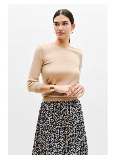 Le pull Minnet, un indispensable pour une allure élégante au quotidien. Son design droit suit les lignes naturelles du corps. Style casual chic assuré. Cette pièce est agrémentée de paillettes pour un effet scintillant. - Pull droit - Col rond - Manches 3/4 - Longueur 58 cm pour une taille S Idées look - Le pull Minnet s'accorde avec une jupe à motif et des bottes hautes pour un look casual chic. - Ce pull droit se marie bien avec un pantalon évasé en denim et des escarpins pour une touche d'élégance discrète. Conseil entretien Lavez ce pull à la main uniquement, le lavage en machine est interdit pour préserver la qualité de la maille. Le repassage est fortement recommandé : effectuez-le à basse température (maximum 110°) et n'utilisez pas de vapeur, car cela pourrait causer des dommages irréversibles. Il est interdit d'utiliser un sèche-linge pour ce vêtement.