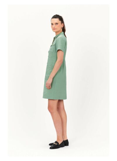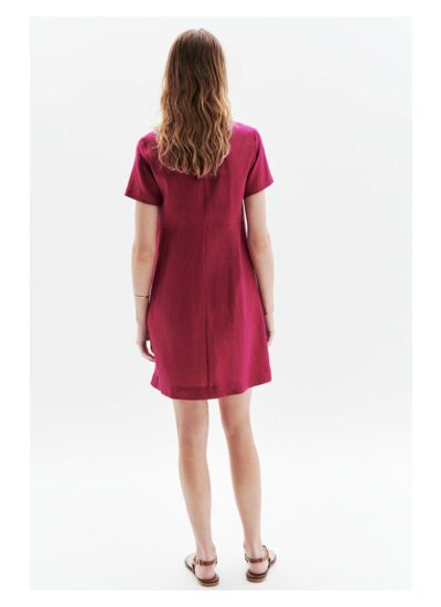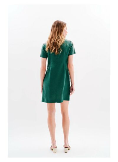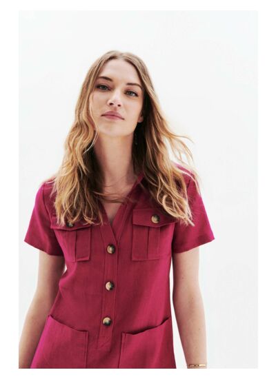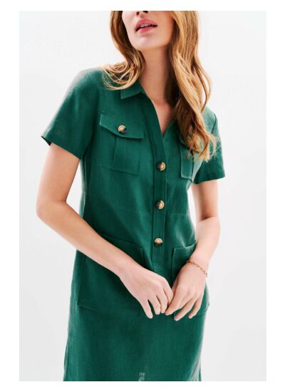 On ne présente plus cette robe légère en lin, inspirée de la saharienne, à la fois féminine et confortable, la robe Laure. Déclinée cette saison en plusieurs coloris pour s'adapter à toutes les carnations et les envies, elle vous accompagnera aussi bien en ville qu'à la plage. - Robe col polo à la coupe droite, fermée par 3 boutons effet corne - Poches plaquées à rabat boutonnées à la poitrine et poches plaquées à la taille - Manches courtes - Découpe à la taille pour cintrer légèrement la robe - Modèle à porter droit ou ceinturé selon votre style et votre morpologie - Longueur, 93 cm pour une taille 38