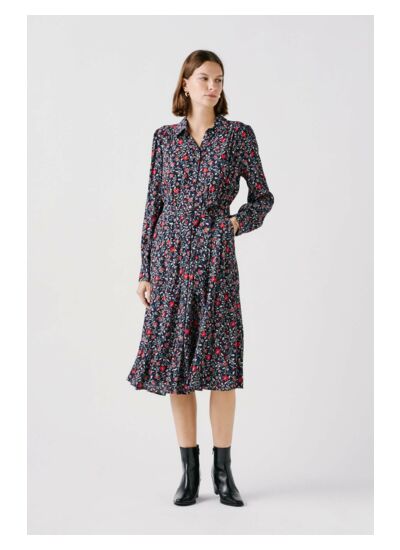 La robe Rdanya sublime votre silhouette. Sa forme fluide met en valeur le haut du corps, tout en floutant la taille. Son style chic décontracté s'adapte à toutes vos occasions. Sa longueur 3/4 lui confère une allure élégante et moderne. - Robe longueur 3/4 - Coupe fluide - Col chemise - Manches longues - Longueur 115 cm pour une taille 38 - Tailles du 36 au 46 - Avec doublure Idées look - La robe Rdanya peut s'associer avec des bottines en cuir noir pour une allure chic et moderne. - Ce modèle de robe se marie parfaitement avec un blazer ajusté et des escarpins pour un look élégant au bureau. Conseil entretien Lavez cette robe à 30°C en cycle délicat pour protéger les fibres du tissu. Le nettoyage à sec et l'utilisation du sèche-linge sont interdits. Pour le repassage, il est recommandé vous pouvez repasser à haute température, jusqu'à un maximum de 200°.