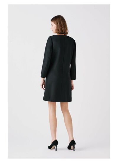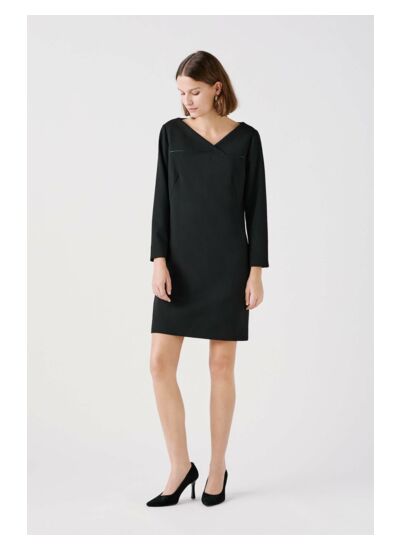 La robe Rdoria, l'élégance à chaque occasion. Sa forme fluide met en valeur le haut du corps et floute la taille. Courte, elle assure une allure féminine et moderne. Un style qui s'adapte partout. - Robe courte - Forme fluide - Col V - Manches longues - Lonueur 91,5 cm pour une taille 38 - Tailles du 34 au 46 - Avec doublure Idées look - La robe Rdoria s'accorde avec des escarpins noirs pour une tenue élégante et raffinée. - Cette robe fluide se marie parfaitement avec un blazer structuré et des bottines à talon moyen, idéal pour un look chic au bureau. Conseil entretien Lavez cette robe à 30°C en cycle délicat pour protéger les fibres du tissu. Le repassage est possible il doit se faire à basse température, maximum 110°, et l'utilisation de la vapeur est interdite. Il est également interdit d'utiliser le sèche-linge pour ce vêtement.