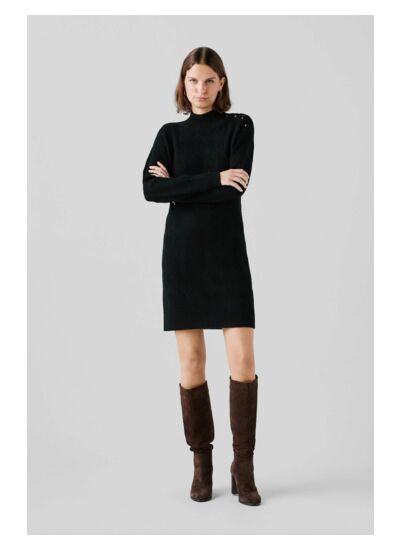 La robe Rmaeva mêle élégance et confort. En 100% laine douce au touché, elle vous offre une chaleur agréable. Sa forme droite allonge la silhouette, créant une ligne élancée. Courte, elle s'associe aisément à divers styles de chaussures pour toutes occasions. - Robe courte - Coupe droite - Col roulé - Manches longues - longueur 56,5 cm pour une taille S Idées look - La robe Rmaeva peut être portée avec une ceinture fine en cuir et des bottes hautes pour un look élégant. - Cette robe droite se combine parfaitement avec un blazer structuré et des escarpins pour une tenue de bureau chic. Conseil entretien Lavez cette robe en laine uniquement à la main, le lavage en machine est interdit pour préserver la qualité de la maille. Le repassage est possible : il est recommandé à basse température (maximum 110°) et sans vapeur. Il est interdit d'utiliser un sèche-linge ou de procéder à un nettoyage à sec.