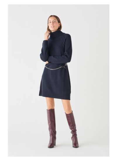 La robe Rmia se distingue par son style casual chic. En laine douce au touché, elle vous offre chaleur et confort pour la mi-saison. L'effet tricoté de la robe apporte une touche visuelle unique, idéale pour toute occasion décontractée ou élégante. - Robe courte - Col roulé - Manches longues - Longueur 85 cm pour une taille S Idées look - La robe Rmia peut être portée avec des bottes hautes en cuir pour une allure chic et élégante. - Ce type de robe se marie parfaitement avec un blazer structuré et des escarpins pour un look professionnel raffiné. Conseil entretien Lavez cette robe à la main uniquement, le lavage en machine est interdit pour préserver la qualité de la laine. Le repassage est possible : il doit s'effectuer à basse température (maximum 110°) et sans vapeur. Il est interdit d'utiliser un sèche-linge ou de procéder à un nettoyage à sec en pressing.