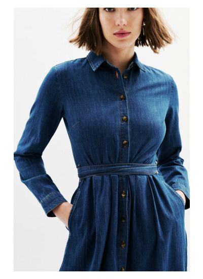 La robe Rpreppy sublime le haut du corps avec sa coupe évasée. Elle floute délicatement la taille. Sa longueur 3/4 convient à diverses occasions, alliant élégance et confort. Un choix parfait pour se sentir belle en toute situation. - Robe - Coupe évasée - Col chemise - Manches 3/4 - Longueur 121 cm pour une taille 38 Idées look - La robe Rpreppy s'accorde avec des bottines en cuir et un sac à main structuré pour une tenue chic de journée. - Cette robe évasée se marie parfaitement avec des sandales plates et un chapeau large pour un look estival élégant. Conseil entretien Pour préserver la qualité de votre robe Caroll et prolonger sa durée de vie, le nettoyage à sec par un professionnel en pressing est très fortement recommandé. Toutefois, vous pouvez également opter pour un lavage à 40°C avec une action réduite. Le repassage est possible : il est recommandé à basse température (maximum 110°), mais attention, l'utilisation de la vapeur est interdite car elle peut causer des dommages irréversibles. Enfin, l'usage du sèche-linge est interdit afin de protéger les fibres du tissu.