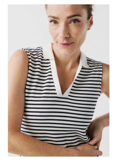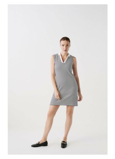 Sport et mode unissent leurs forces ! Cette année, l'été est placé sous le signe du sport. L'occasion pour Caroll de proposer une collection capsule aux allures sportives ! Un vestiaire chic et mode qui vient emprunter ses codes au sportwear. À porter sur le terrain ou au quotidien ! La robe marinière rvicky se dote d'une coupe courte et ajustée, parfaite pour vous sublimer en toute élégance. Une pièce hyper féminine composée de coton mélangé pour vous garantir un porté des plus confortables. - Col polo contrastant - Sans manches - Longueur 92 cm pour une taille 38