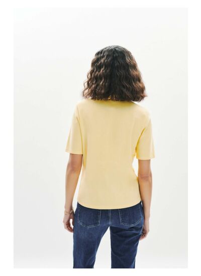 Avec sa coupe droite, le t-shirt Tcandy sublime toutes les morphologies. Son style casual chic se prête à diverses occasions. Il met en avant la taille avec élégance. - T-shirt - Coupe droite - Col polo - Manches courtes - Longueur 60 cm pour une taille S Idées look - Le t-shirt Tcandy se marie bien avec un jean à jambes larges et des sandales plates pour une allure décontractée chic. - Ce t-shirt peut s'associer avec une jupe midi fluide et des escarpins pour un look élégant au quotidien. Conseil entretien Lavez votre t-shirt à 30°C pour maintenir la qualité de la maille. Le repassage est possible : il est recommandé à basse température, maximum 110°, et le recours à la vapeur est interdit car cela pourrait endommager le tissu de manière irréversible. Il est interdit d'utiliser un sèche-linge ou de procéder à un nettoyage à sec en pressing.