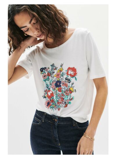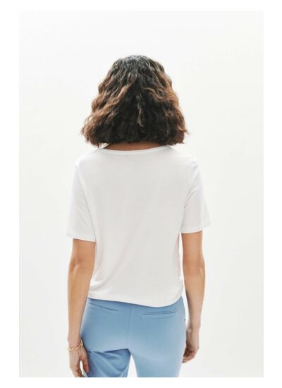 Le t-shirt Telegance, un essentiel à la coupe droite, idéal pour toutes les morphologies. Son style casual chic convient à diverses occasions. Un incontournable de votre garde-robe. - T-shirt - Coupe droite - Col rond - Manches courtes - Longueur 60 cm pour une taille S Idées look - Le t-shirt Telegance peut être porté avec un pantalon bleu clair et des ballerines pour une tenue casual chic. - Ce t-shirt se marie bien avec une jupe midi évasée et des sandales à talons pour un look élégant à porter la journée. Conseil entretien Lavez votre t-shirt à 30°C pour préserver la qualité du vêtement. Le repassage est possible : il est recommandé à basse température, maximum 110°, et le recours à la vapeur est interdit car cela pourrait endommager le tissu. Il est également interdit d'utiliser un sèche-linge ou de procéder à un nettoyage à sec en pressing.