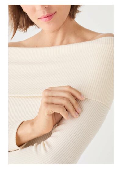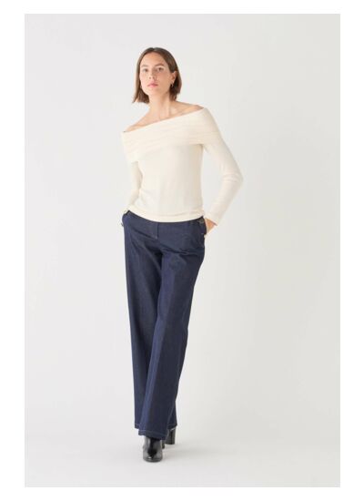 Un essentiel revisité, le t-shirt Teresa. Sa coupe près du corps épouse parfaitement vos formes. Chic décontracté, il vous garantit un look élégant chaque jour. C'est la pièce coup de coeur pour enrichir votre garde-robe. - T-shirt - Coupe près du corps - Encolure bardot - Manches longues - Longueur 46 cm pour une taille S Idées look - Le t-shirt Teresa se marie bien avec un pantalon évasé en denim et des bottines à talons pour une allure chic décontractée. - Ce top peut être combiné avec une jupe midi fluide et des escarpins pour un look élégant. Conseil entretien Lavez votre t-shirt à 30°C en cycle délicat pour préserver la qualité du tissu. Le repassage est possible : effectuez-le à basse température, maximum 110°, et il est interdit d'utiliser de la vapeur. Le nettoyage à sec et l'utilisation du sèche-linge sont interdits.