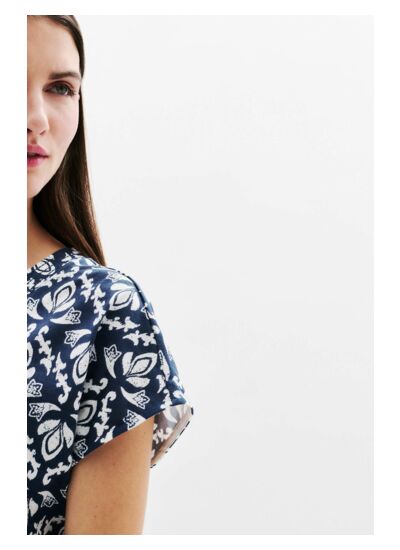 Le t-shirt Tikat, essentiel à toute garde-robe. Sa coupe droite et courte convient à toutes les morphologies. Adoptez un style chic décontracté et féminin pour diverses occasions. Un must-have qui s'adapte avec aisance à votre quotidien. - T-shirt court - Coupe droite - Col V - Manches courtes - Longueur 60 cm pour une taille S Idées look - Le t-shirt Tikat peut être porté avec un jean ajusté et une ceinture noire pour un look chic décontracté. - Ce top indispensable se marie parfaitement avec une jupe midi fluide et des sandales à talons pour une touche féminine. Conseil entretien Lavez votre t-shirt à 30°C pour maintenir sa qualité et prolonger sa durée de vie. Le repassage est possible : il est recommandé à basse température, maximum 110°, et le recours à la vapeur est interdit car cela pourrait endommager le tissu de manière irréversible. Il est interdit d'utiliser un sèche-linge ou de procéder à un nettoyage à sec en pressing.