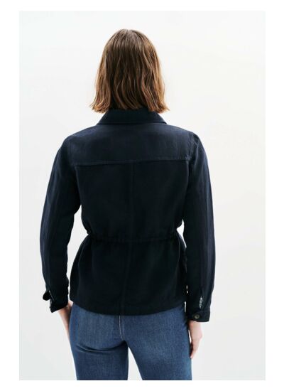 L'incontournable saharienne, confectionnée dans une toile de lin et coton pour une veste légère, idéale en entrée de saison. Imaginée dans des coloris très mode et facile à assortir, la veste Grace se porte droite et ouverte sur un t-shirt à message, ou fermée et appuyée à la taille grâce à des liens coulissants, pour arborer une silhouette féminine et structurée. - Veste à la coupe ajustable grâce à des liens coulissants cousus à l'intérieur de la veste - Modèle fermé par 5 boutons effet corne - Poches plaquées à rabat fermées par un bouton effet corne à la poitrine - Fausses poches à rabat à la taille - Poignets fermés par un bouton effet corne - Dessous de col, pied de col et doublure des poignets fantaisies - Longueur, 64 cm pour une taille 38