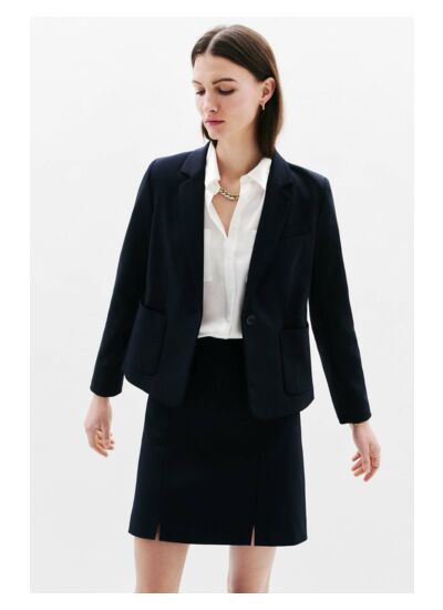 La veste Vauroca, un indispensable pour les journées plus fraîches. Avec sa coupe droite et courte, elle s'adapte à toutes les morphologies. Son style working en fait une pièce clé de votre garde-robe. - Veste courte - Coupe droite - Col tailleur - Manches longues - Longueur 58 cm pour une taille 38 - Fermeture boutonnée - Tailles du 34 au 46 - Doublée - À associer au pantalon Psidiko2 Idées look - La veste Vauroca peut être portée avec une chemise blanche et une jupe droite pour un look professionnel épuré. - Cette veste courte s'associe parfaitement à un pantalon ajusté et des escarpins pour une tenue élégante au bureau. Conseil entretien Pour préserver la qualité de votre veste Caroll et prolonger la durée de vie, le nettoyage à sec par un professionnel en pressing est très fortement recommandé. Toutefois, vous pouvez également opter pour un lavage à 30°C en cycle délicat. Le repassage est possible : il est recommandé à basse température (maximum 110°), mais l'utilisation de la vapeur est interdite car elle peut causer des dommages irréversibles. Il est interdit d'utiliser le sèche-linge.