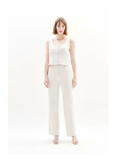 La veste Virevolte, nouveauté de la saison. Avec sa coupe droite et courte, elle souligne parfaitement la taille. Idéale pour les cérémonies et grandes occasions. Son style élégant complète une allure raffinée. - Veste courte - Coupe droite - Col rond - Sans manches - Longueur 30 cm pour une taille 38 - Fermeture boutonnée - Avec doublure - À associer aux pantalons Pvolare ou Pgautier3 et à la veste Vjana2 Idées look - La veste Virevolte se marie bien avec un pantalon à pinces et des sandales à talons pour une tenue élégante. - Ce blazer peut être assorti à une jupe crayon de teinte neutre et des escarpins pour un look raffiné. Conseil entretien Pour entretenir votre veste Caroll, il est impératif de la confier à un professionnel pour un nettoyage à sec en pressing. Le lavage en machine ou à la main est interdit. Concernant le repassage : il est possible mais doit se faire à basse température (maximum 110°), et l'utilisation de la vapeur est interdite car elle peut endommager le tissu de manière irréversible. Enfin, l'usage du sèche-linge est également interdit pour préserver les fibres du tissu.